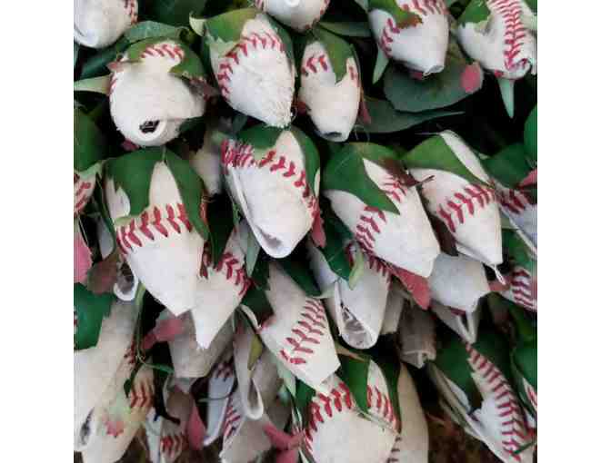A dozen Baseball Roses from Gregg Garfinkel. These roses are hand made by a baseball fanatic using gently used professional baseballs. The roses never wilt and are for the true fan of our Nation’s greatest game.
