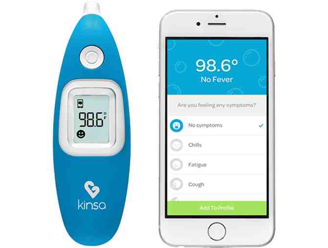 The Kinsa Smart Ear Thermometer takes an accurate read in one second, at the push of a button. It connects to your phone via bluetooth and is gentle enough to use on a sleeping or squirmy baby.