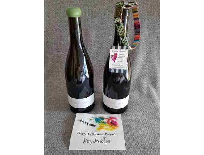 This package is for two bottle of white wine by Monochrome. The dog collar is a small and is handcrafted by Merry Jane & Thor. So original and sweet!