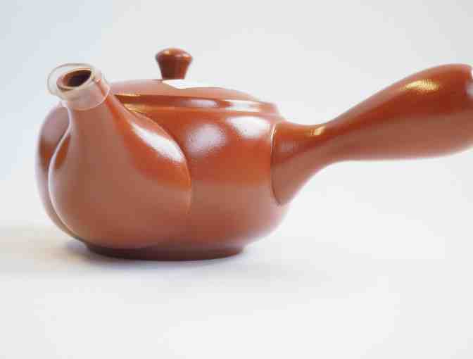 Kyusu, or Japanese teapots, are commonly used for drinking green tea. With a handle on the side, this uniquely designed teapot is a perfect addition to your home to serve Japanese teas. This particular kyusu is about 7.5" across from the stem to the teapot's edge.