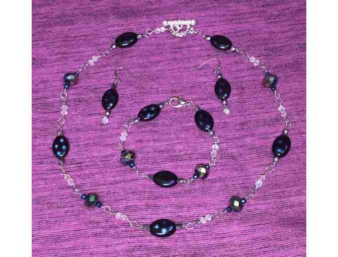 Wire wrapped necklace, earrings, bracelet set.