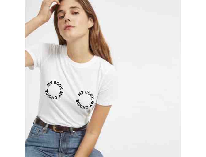 Description: Cotton, unisex fit shirt for gender neutral wear. Design aims to proclaim body autonomy and reproductive rights as a human right.