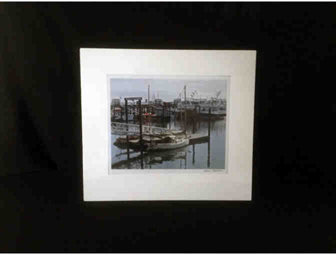 Kathleen Magnusson's matted digital photograph, "Busy", captures a calm day in Provincetown, Cape Cod's marina.
