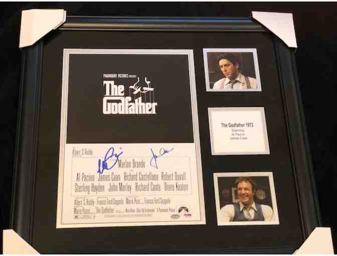 The Godfather 11x17 movie poster signed by James Caan and Al Pacino framed