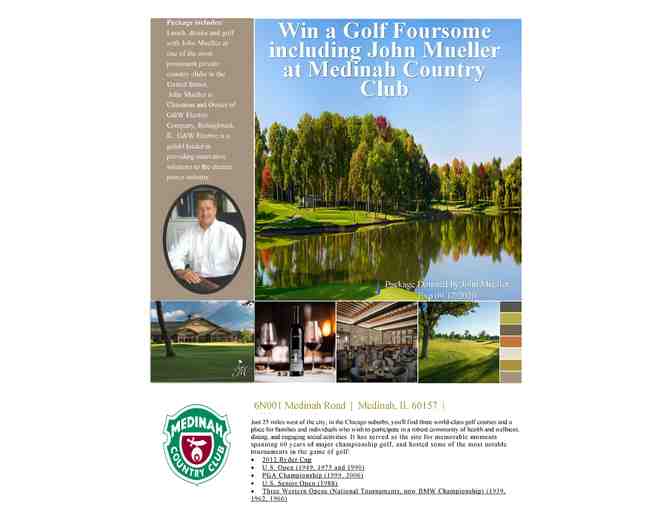 Package includes: Lunch, drinks and golf with John Mueller at one of the most prominent private country clubs in the United States.