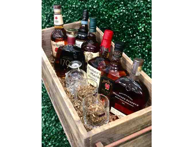 Enjoy a taste of Kentucky with an Express Funeral Funding Bourbon Basket. Filled with seven bottles of Kentucky's finest bourbons including Jim Beam Black Label, Maker's Mark, Woodford Reserve, Four Roses Bourbon, a Waterford crystal stacking decanter and a set of two tumblers, this gift is sure to bring a smile to your lips!