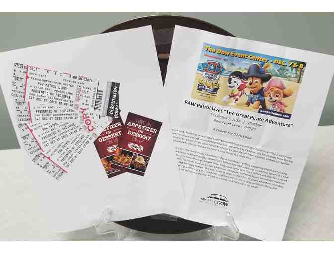 4 Paw Patrol tickets at the Dow Event Center and 2 Free Appetizer or Dessert Cards for your next visit to TGI Fridays