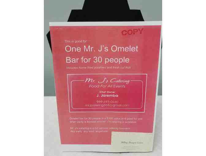 Certificate for 30 person omelette bar at the Hilltop Banquet Center and hall rental