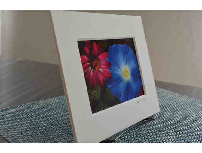 Lovely print of two stem in gorgeous blue & deep pink hues.