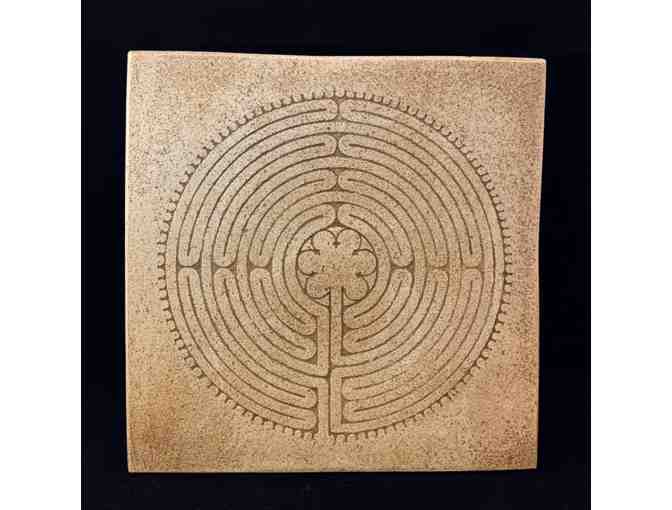 Unique artwork directly from Chartres. This heavy stone artwork features the Chartres Labyrinth. It hangs on a wall beautifully and looks great next to your bed so you can look at it each night before sleeping, and each morning upon waking. It will bring peace and calm to your daily routine.