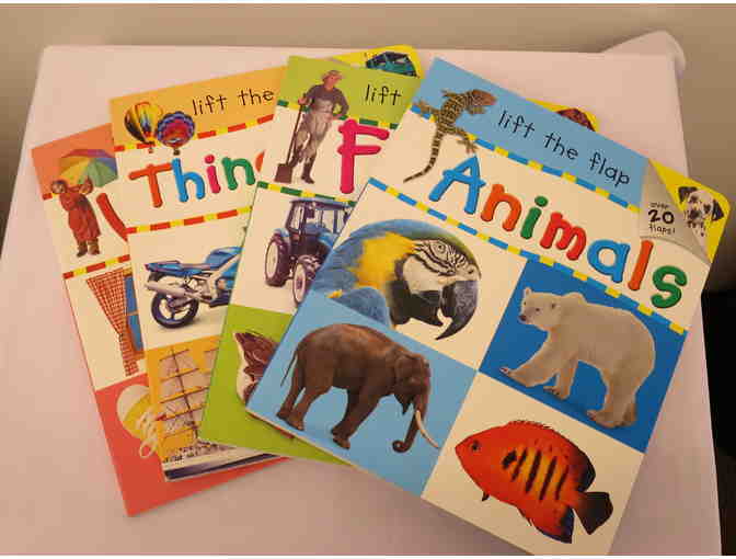 Lift the flap to discover a new world of words and pictures! These interactive picture books have been designed to delight and excite early learners. The 4-book collection contains a book on Animals, Farm, Things that Go and Words.
