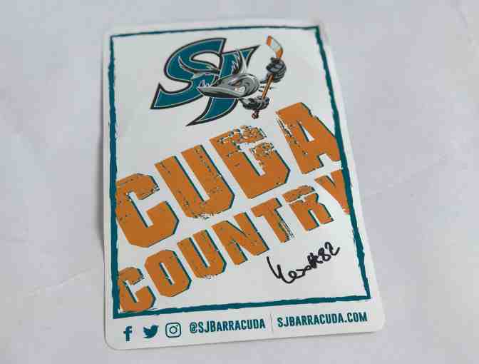 Ivan Chekhovich is a young San Jose Barracuda forward from Russia with lots of fresh talent! Chekhovich began with the San Jose Sharks and bounced to the San Jose Barracudas to become a "lethal shot" for the professional team. In the next season, San Jose is looking forward to his quick and agile movements on the rink. This signed Cuda Country sign is a great addition to Barracuda fan memorabilia!