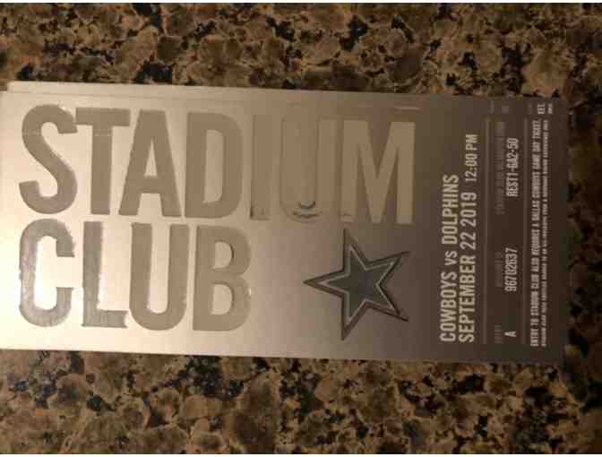 Two (2) tickets to the Dallas Cowboys Versus Miami Dolphins football game on September 22, 2019 PLUS exclusive entrance to the Stadium Club for the day!  You get to come to the game early, enjoy FREE food and drinks before, during and after the game!