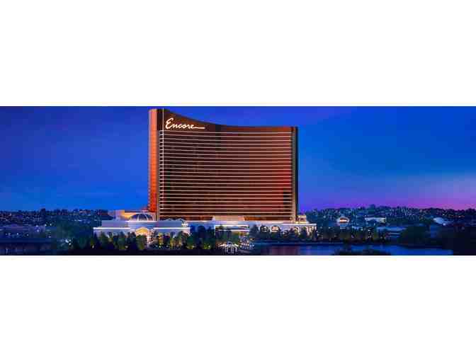 Two-night stay in an Encore Premier King Room, a complimentary dining experience at The Buffet for two guests, and a $200 gift certificate to the Sinatra Restaurant.