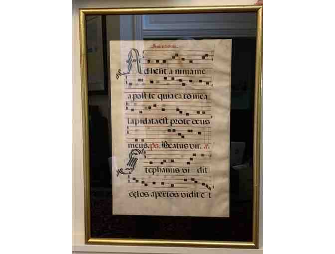 A pair of beautiful original pages from a medieval choir book, written on velum on both sides of the page, newly reframed and in perfect condition.