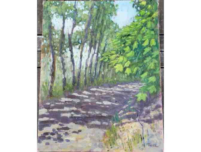 "Greenough Park Path" by Matt Thiel; 11 x 14, oil, framed.