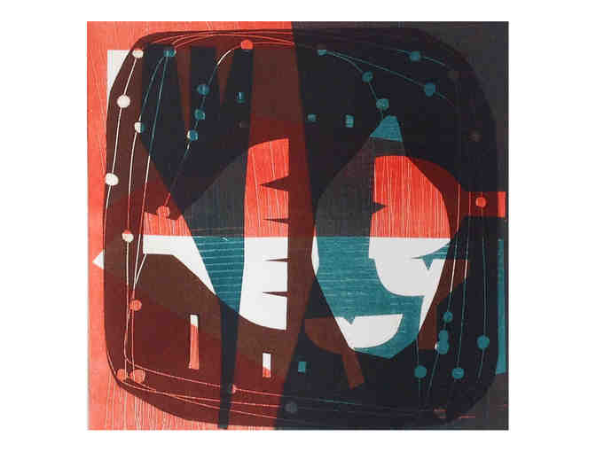 Monotype print on BFK paper with oil-based ink, designs including freehand drawings and use if stencils, multiple layering with registration to finish.