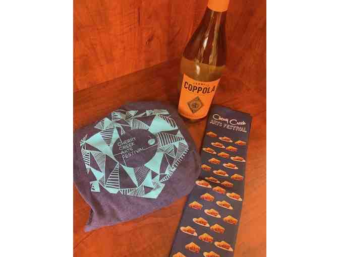 Enjoy Francis Ford Coppola Diamond Collection Chardonnay 2017 California, USA, along with a Cherry Creek Arts Festival Cherry Pie socks and a men's XL CCAF shirt.