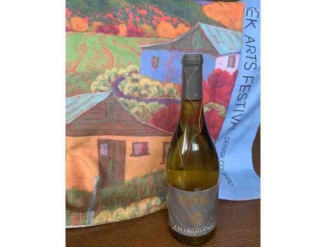 Enjoy Francis Ford Coppola Diamond Collection Chardonnay Pavilion Black Label, California, USA, along with a 2019 CCAF Jennifer Cavan Poster Towel.