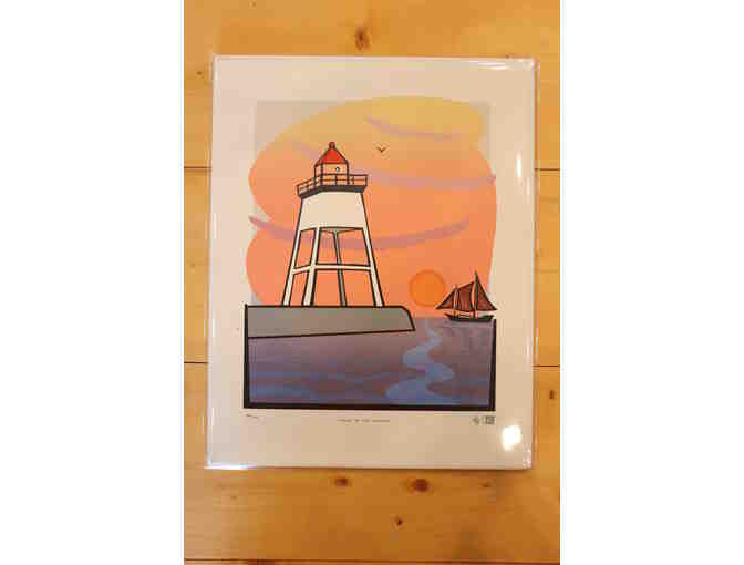 Midnight Oil Studio & Workshop reflects two icons of the Grand Marais harbor - the lighthouse and the Hjordis!