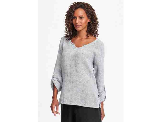 Special Pullover - Traveler's Collection - Midnight Panama weave - size Large. Soft weave of navy and white ovesized top with button sleeve detail.