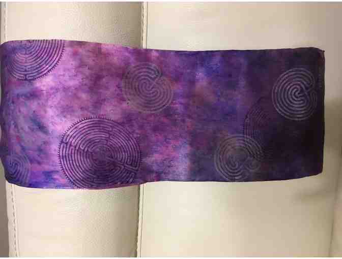 100% silk purple labyrinth scarf, hand painted by Artist Kay Kemp from Houston, TX USA.