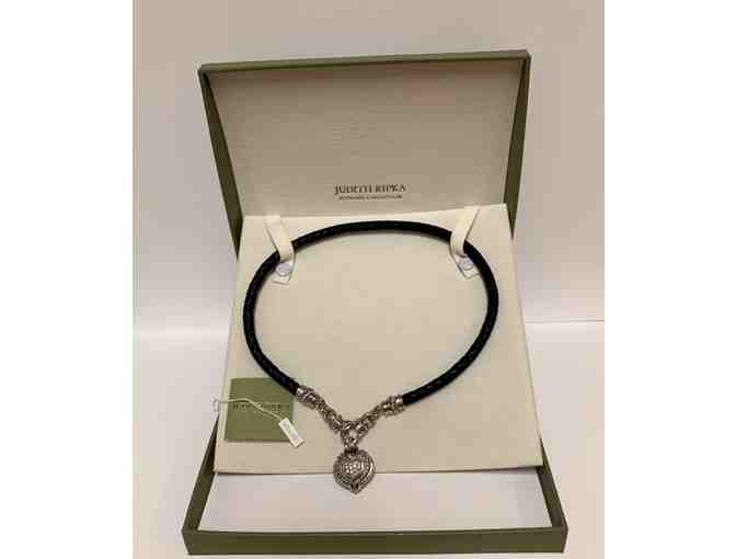 Judith Ripka Black Leather Braided Sterling Silver Heart Necklace