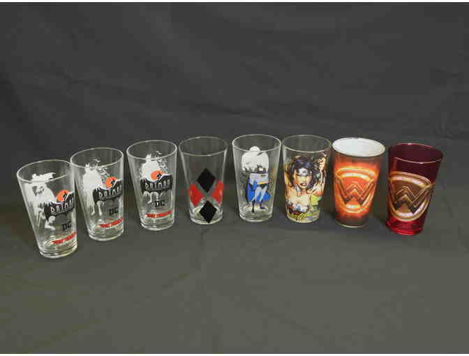 Enjoy this set of eight 16 oz set of glasses (tumblers) featuring some of your DC Comics favorites from the Justice League and beyond.