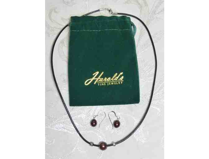 18" necklace with single brown pearl and 2 silver bead accessories with matching earrings