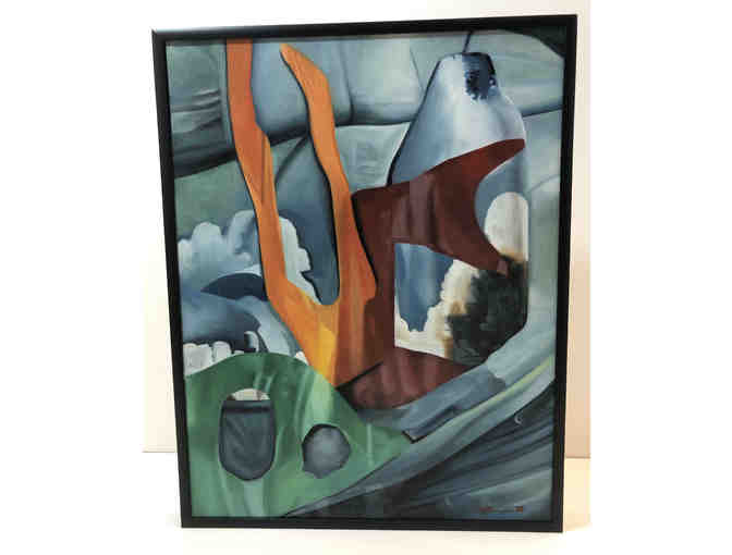 You are bidding on oil on canvas painting titled "High Seas Gladiators" by local artist Raymond Gonsalves, III. The framed painting measures 14" x 11". Ray is visually impaired and known for the incredible detail that he includes in all of his art work.