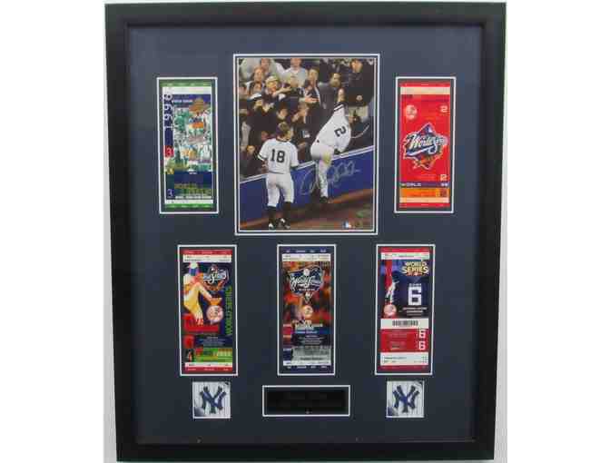 - Derek Jeter framed Yankees collage with replica World Series tickets and an autographed 8x10 photo
