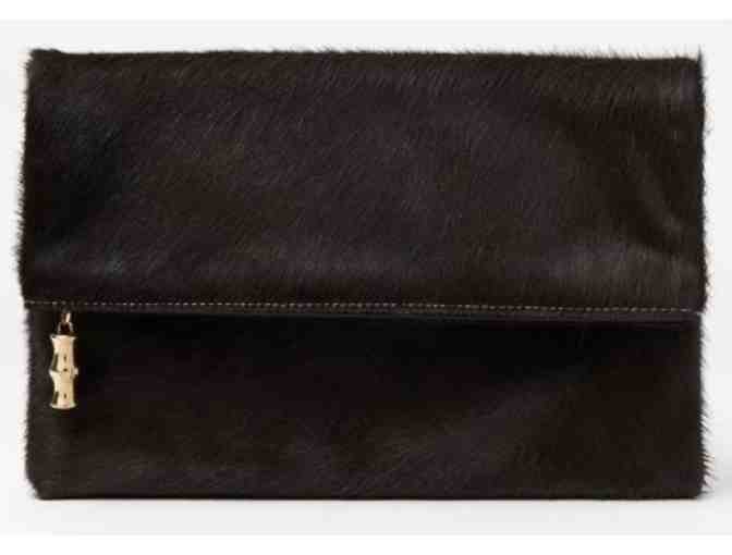 Finish off your look in style with our haircalf clutch. Its modern foldover shape and bamboo-shape zipper pull ensure it stands out in just the right way.