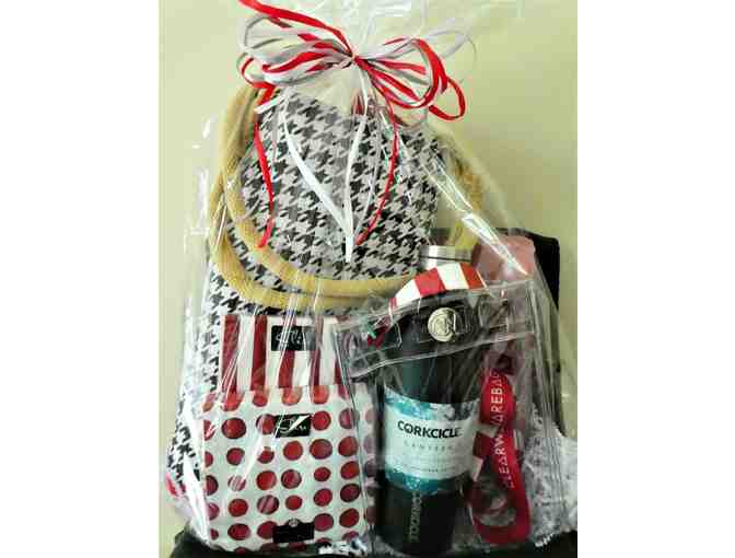 This Alabama Fan Kit will having you yelling "Roll Tide Roll". The kit includes one Jute Tote, a Corksickle, a clear stadium bag, and plates and napkins.