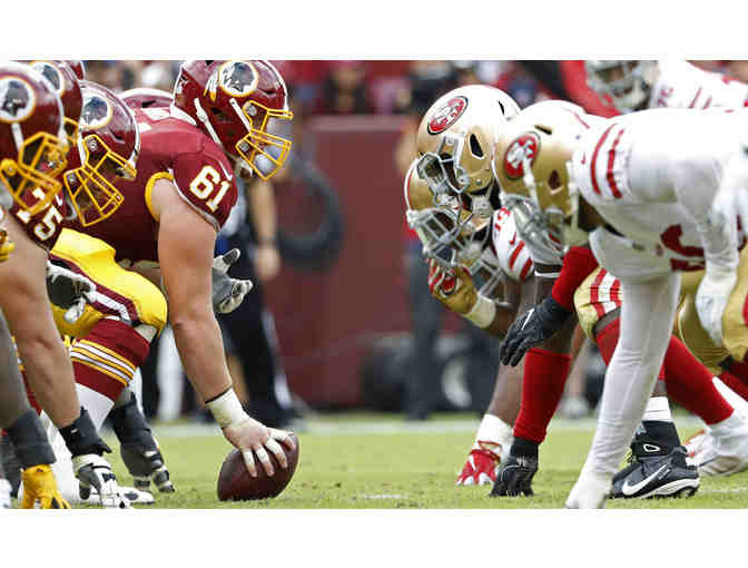 Two tickets and a parking pass to Washington Redskins vs. San Francisco 49ers on 10/20/19.