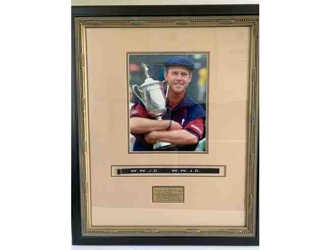 Framed Payne Stewart Photograph with WWJD bracelet.