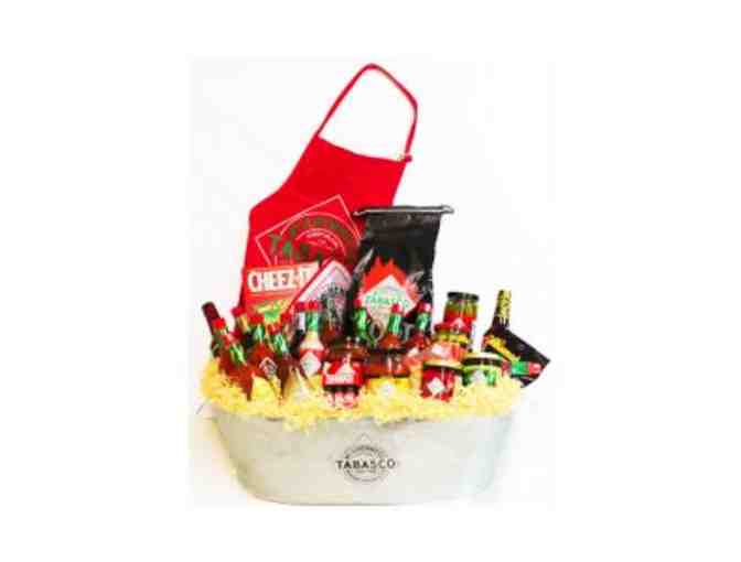 Tabasco's largest gift basket, packaged in a rustic galvanized tub, contains the most popular TABASCO® brand Products – everything from Chili to Steak Sauce, Wood Chips, Spicy Olives and all 7 of their Pepper Sauce flavors: Original Red, Green Jalapeño, Chipotle, Cayenne Garlic Pepper, Habanero, Buffalo Style and SWEET & Spicy.
