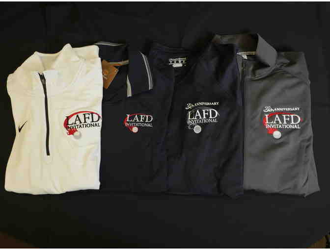 Portray your firefighter pride by showing off exclusive wearable gear. Support Widows, Orphans & Disabled Firemen’s Fund by wearing a one-of-a-kind shirt, jacket and pullover from one of our most appealing events the LAFD Invitational Golf Tournament.