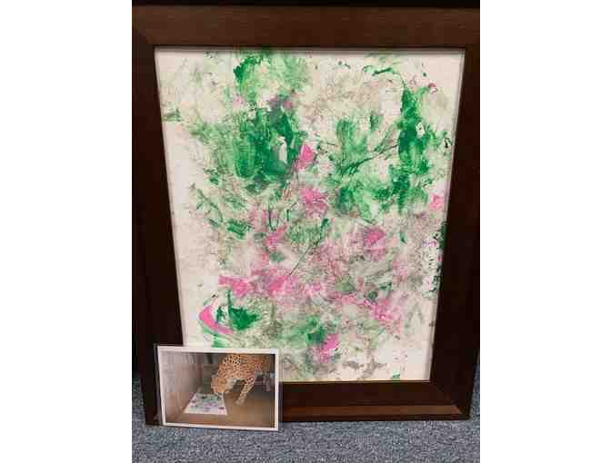 16" x 20" Framed Animal Art Painting by one of the Montgomery Zoo's Cheetahs, Layla, comes with a picture of her painting her creation.