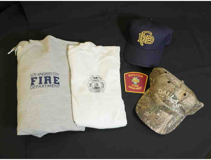 This Men’s merchandise basket is perfect for the man who has a cool casual style, but enjoys showing off their firefighter spirit! You will find exclusive items such as an Boston FD patch, Dallas Fire hats (2), an Tampa Fire & Rescue t-shirt and an LAFD sweatshirt.
