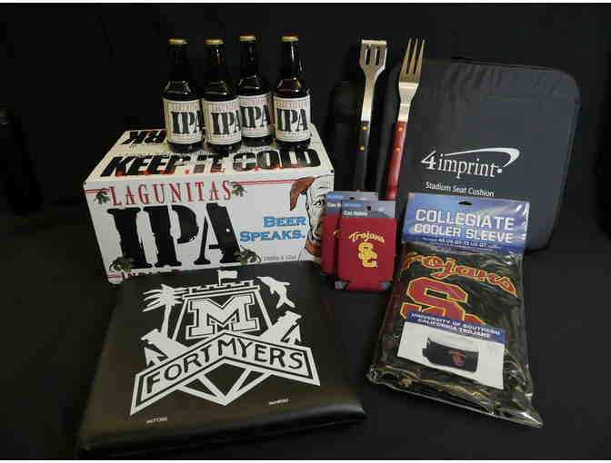 Root for the USC Trojans at your next tailgate outing or backyard party with this fun fan pack. Includes case of Lagunitas IPA, two USC can holders, a USC cooler cover, BBQ grilling tools and a couple stadium seat cushions. Plus, a 15-can-pack of 12 Fl. Oz Blue Moon Belgian White beer and a 12-can box of 24 oz. of Steel Reserve Hard Pineapple. Go Trojans!