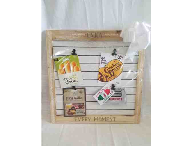 Includes $25 at each of the following: Matchbox, Chipotle, First Watch, Olive Garden, Cracker Barrel, and Paisano's.