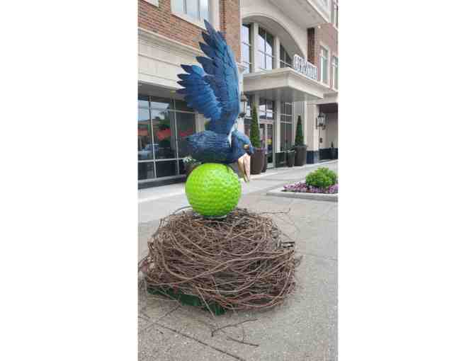 Sally Allan and Audrey Berkan have partnered this year to create a very unusual bird. He is certainly not the most attractive bird in the flock but he is one of the most interesting. This 5 foot creature is native to eastern Africa and likes to munch on eels and lungfish. He also confuses golf balls with eggs.