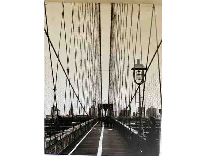 Walking across the Brooklyn Bridge photograph printed on canvas.