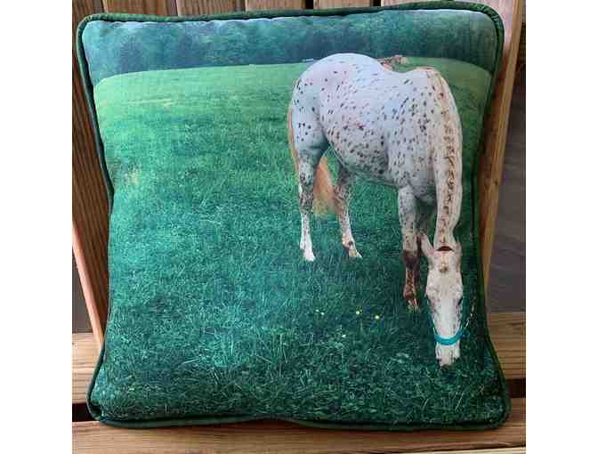 Handmade pillow with horse, Happy.