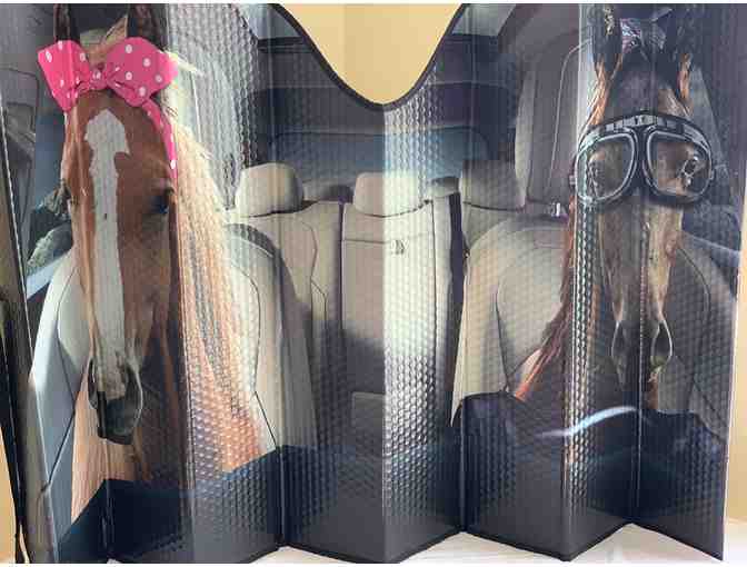 Hilarious horse-themed car window visor.