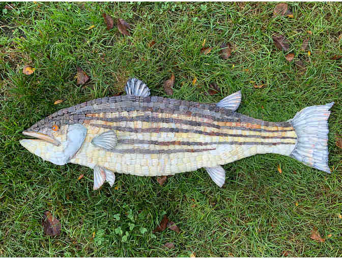 Jacques | Jacques is no shellfish fish! He enjoys long swims along Cape Poge and romantic sunsets in Menemsha. Each of his scales are individually hand cut and made entirely from Vineyard shells. He can't wait to meet his sole mate. . .