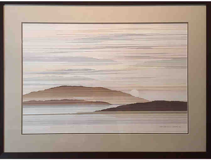 This seriograph print is signed and numbered (285/300). The print is double matted in a complementary neutral matt and framed in a simple wood frame. It measures 47" x 35.5" with frame, and 25" x 23.5" with the matte. Shipping and processing fees will be added to the winning bid.
