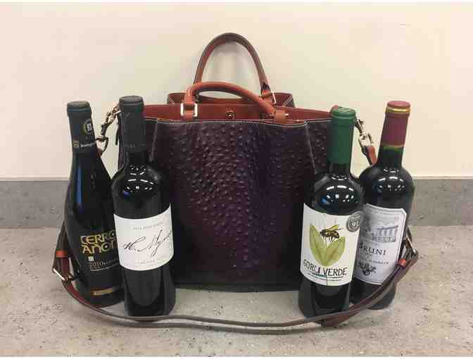 Dooney & Bourke large eggplant Barlow satchel with 4 bottles of wine!