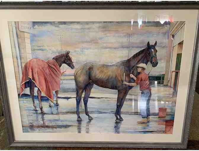 48x36 with equestrian artist signature (Elaine Anglim '87) in bottom right.