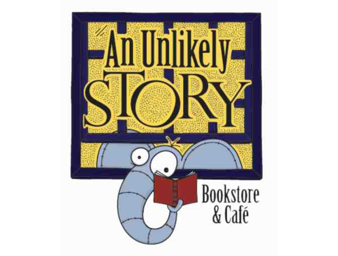 $25 Gift Card to An Unlikely Story Bookstore and Cafe and tote bag.
